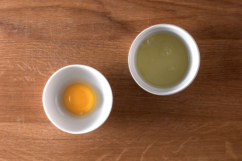 In der Zwischenzeit bei einem Ei Eiweiß und Eigelb trennen.